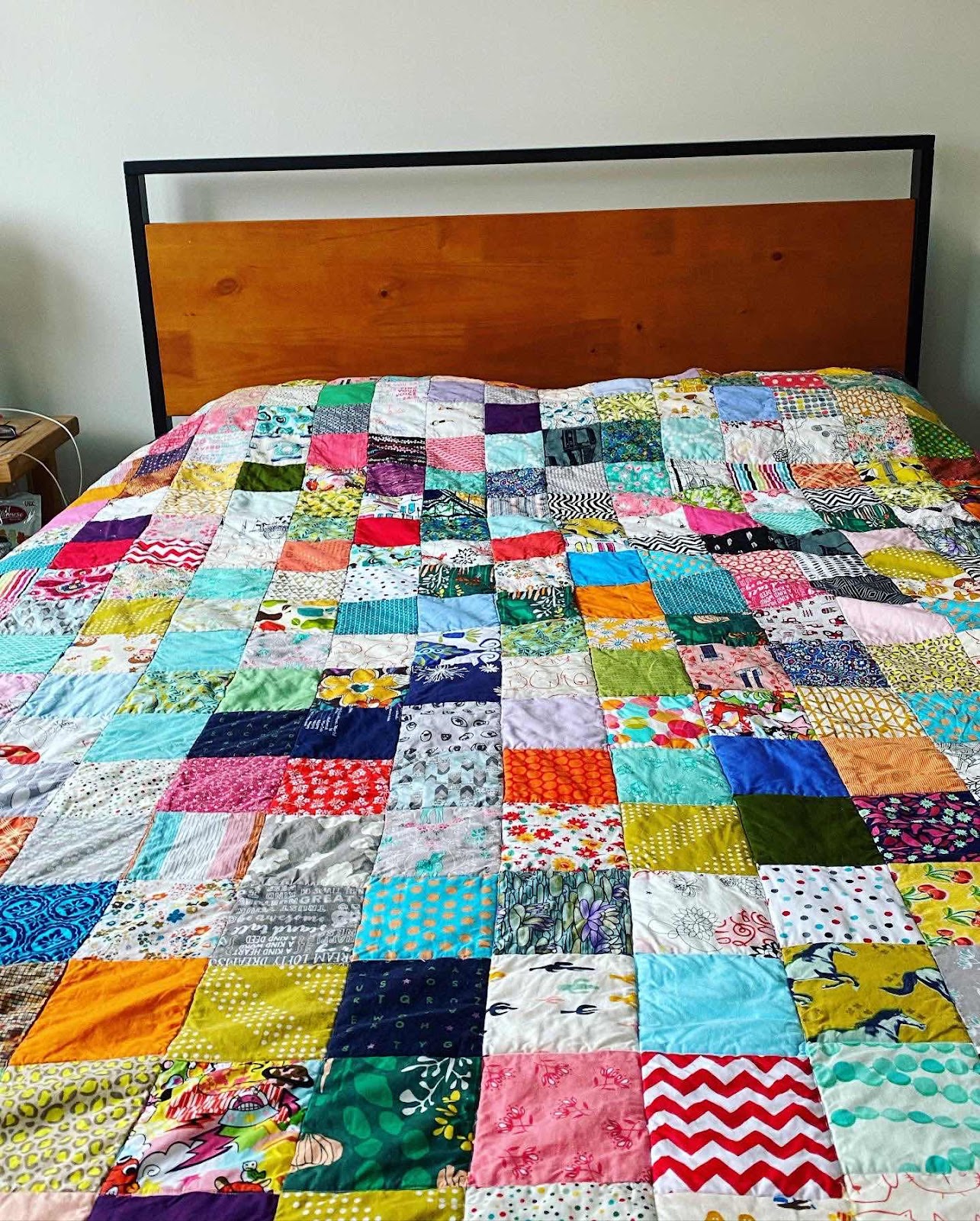 The back is all random fabrics I had intended to use a single solid but then decided to use prints I would never put together in years.